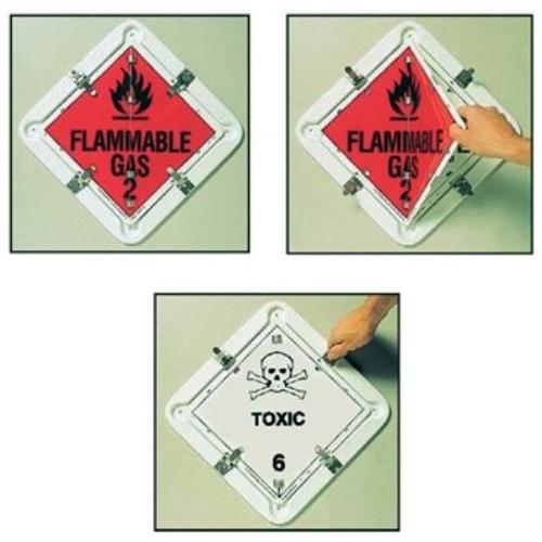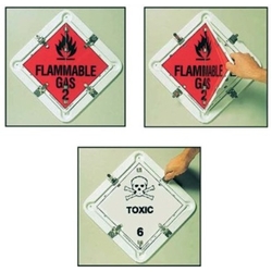 Includes 15 classes so you're always prepared for the next load. Heavy duty construction. Classes are: Explosive 1.1, Flam Gas 2.1, Non-Flam Non-Toxic Gas 2.2, Toxic Gas 2.3, Flam Liquid 3, Flam Solid 4.1, Spont Combustible 4.2, Danger When Wet 4.3, Oxidizing 5.1, Organic Peroxide 5.2, Toxic 6.1, Corrosive 8, Misc Dangerous Goods 9, Mixed Dangerous Goods, Please Drive Safely.